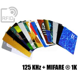 Color printed offset cards with customization in PVC ISO 7810 ID-1 standard format with size 85.60 53.98 mm (3.370 2.125 in) and rounded corners with a radius of 2.88-3.48 mm. Originally used for bank cards today it is also used in many countries for driving licenses and identity cards and in many commercial sectors for loyalty cards, identification and business cards. 125 KHz + Mifare ® 1K LF 125 KHz + HF 13,56 MHz original NXP.