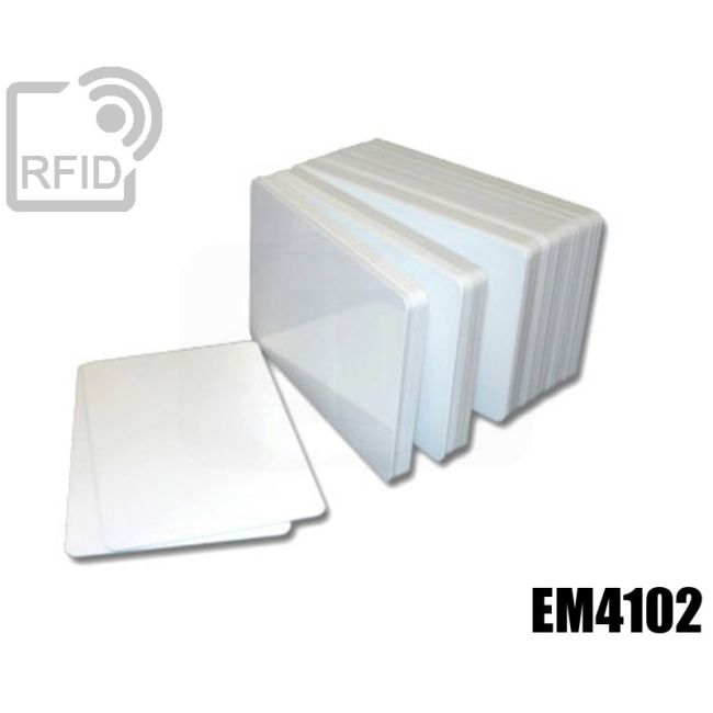 ISO 7810 ID-1 standard size white PVC laminated neutral cards with dimensions of 85.60 53.98 mm (3.370 2.125 in) and rounded corners with a radius of 2.88-3.48 mm. Originally used for bank cards today it is also used in many countries for driving licenses and identity cards and in many commercial sectors for loyalty cards, identification and business cards. EM4102 RFID chip read only LF 125 KHz memory 64 bit original EM Microelectronic.
