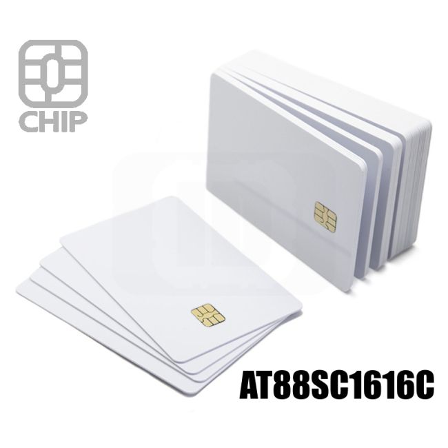 Tarjetas neutras laminadas de PVC blanco de tamaño estándar ISO 7810 ID-1 con unas dimensiones de 85,60 53,98 mm (3,370 2,125 pulg.) y esquinas redondeadas con un radio de 2,88-3,48 mm. Utilizado originalmente para tarjetas bancarias, hoy también se emplea en muchos países para permisos de conducir y tarjetas de identidad y en muchos sectores comerciales para tarjetas de fidelidad, identificación y tarjetas de visita. AT88SC1616C chip de contacto de lectura y escritura original Atmel.