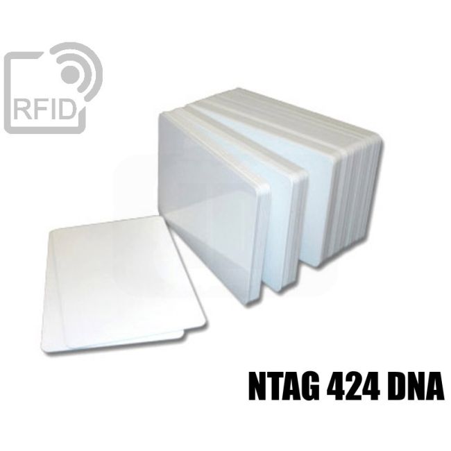 Tessere neutre laminate in PVC bianco formato standard ISO 7810 ID-1 con dimensione di 85,60 × 53,98 millimetri (3,370 × 2,125 in) e angoli arrotondati con un raggio di 2,88-3,48 mm. Utilizzate in origine per le carte bancarie oggi è utilizzato in molti paesi anche per le patenti di guida e carte di identità e in molti settori commerciali per carte fedeltà, identificazione e biglietti da visita. NFC ntag 424 DNA chip RFID lettura e scrittura (Read/Write) HF 13,56 MHz ISO 14443A / NFC Type 2 originale NXP.